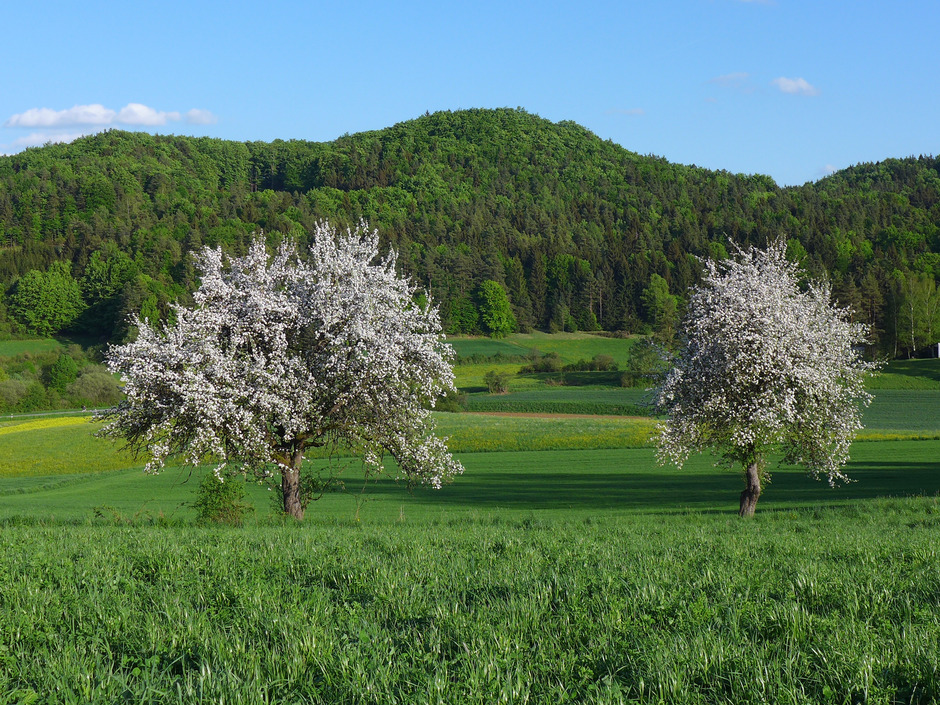Als Streuobstwiesen werden Wiesenflächen bezeichnet, auf denen hochstämmige Apfel-, Birn- Kirsch-, Zwetschgen- oder Walnussbäume locker verteilt, also „verstreut“, stehen. Typische Merkmale sind großkronige Bäume mit unterschiedlicher Altersstruktur sowie die Unternutzung als Weide oder Mähwiese. In der Metropolregion Nürnberg hat diese Form des Obstanbaus eine lange Tradition. Vor allem in der Fränkischen Schweiz, in Altmühlfranken, rund um den Hesselberg, auf der Hersbrucker Alb und der Frankenalb, im südlichen Steigerwald sowie in Teile des Fichtelgebirges ist diese Form des Obstanbaus noch häufig zu finden. Rekordhalter ist die Metropolregion im Bereich des Kirschanbaus, denn hier befindet sich das größte zusammenhängende Kirschbaumanbaugebiet Europas mit einer Fläche von 2.500 ha. Für die Biodiversität und den Erhalt der Artenvielfalt sind Streuobstwiesen unverzichtbar, denn sie stellen den Lebensraum für eine Vielzahl von Insekten, Vögeln, Fledermäusen und Kleinsäugern.