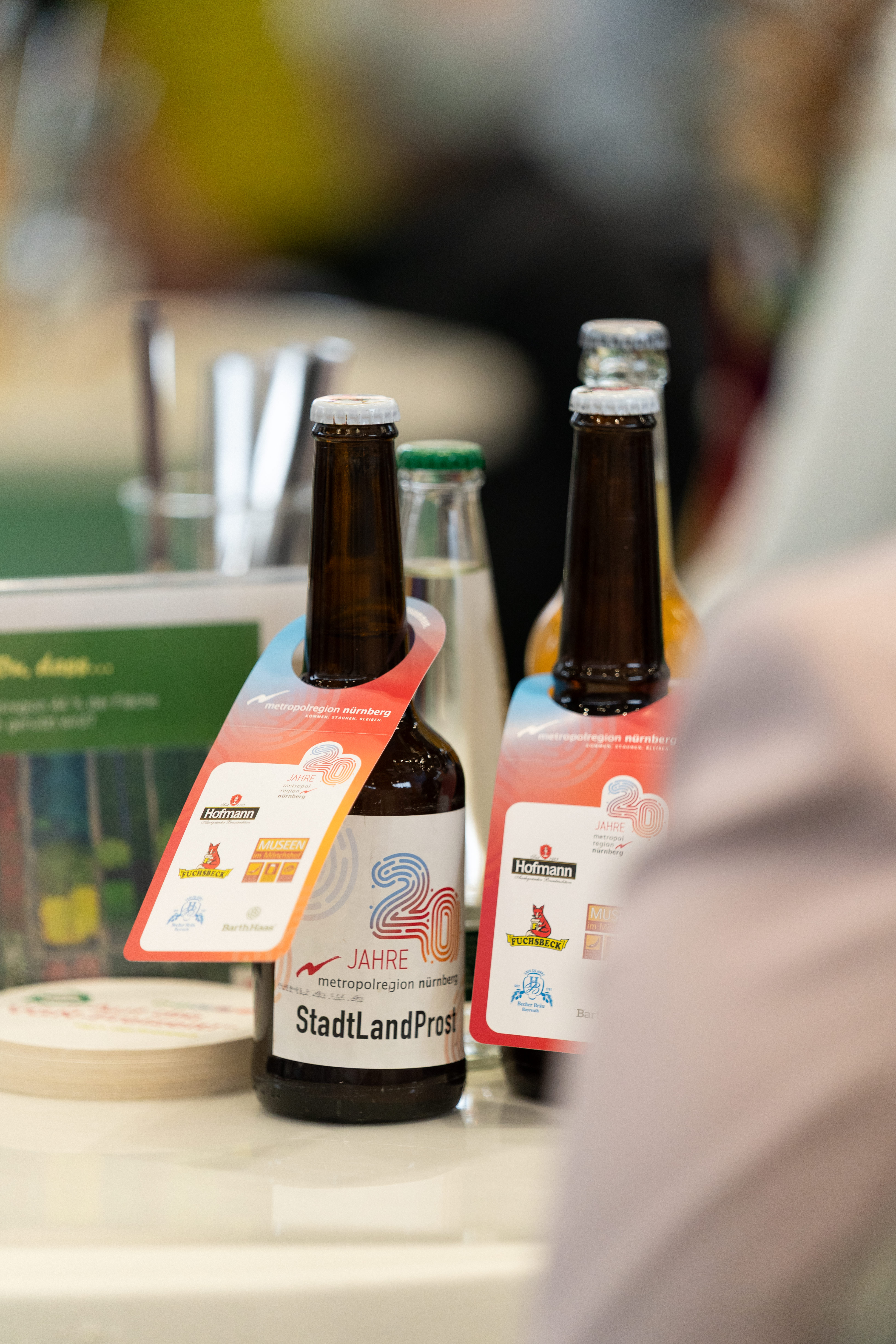 Verkostet wurde auf der Consumenta auch das limitierte Jubiläumsbier „StadtLandProst“. Braumeisterinnen und Braumeister aus Oberfranken, Mittelfranken und der Oberpfalz hatten das Bier zum 20-jährigen Bestehen der Metropolregion entwickelt. Dabei ist das Produkt zu 100 Prozent regional: Die Hefe und das Brauwasser stammen aus Kulmbach, die Braugerste für das Malz von Feldern aus der Umgebung. Für den Hopfen verwendeten die Brauer Sorten aus Hersbruck, Spalt und dem Aischgrund. Die Rezeptfindung fand bei Barth Haas in Nürnberg statt, dem weltweit führenden Hopfenhändler. Das Brauen geschah in der Museumsbrauerei des Kulmbacher Mönchshofs, die Abfüllung erfolgte bei Becher Bräu in Bayreuth.