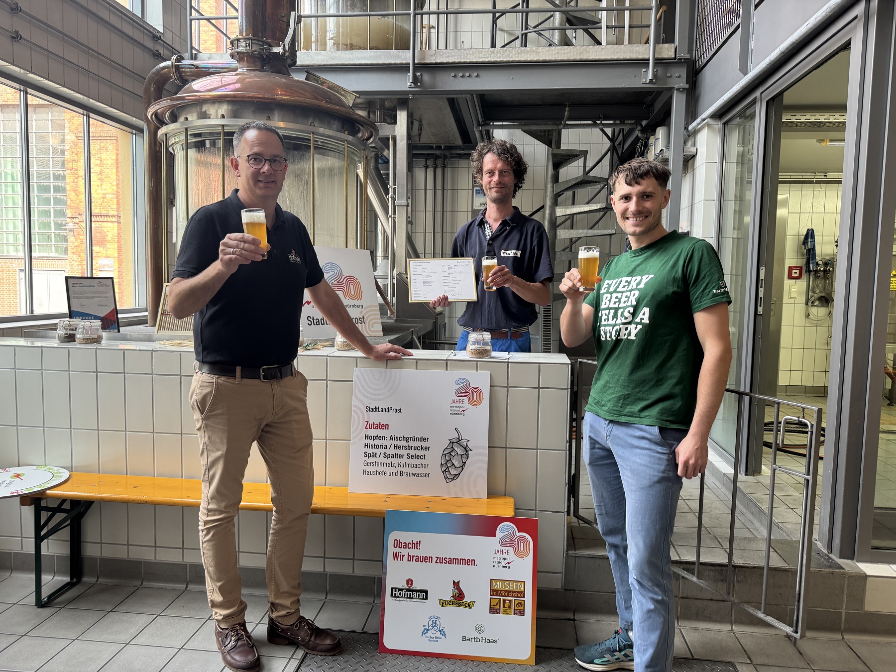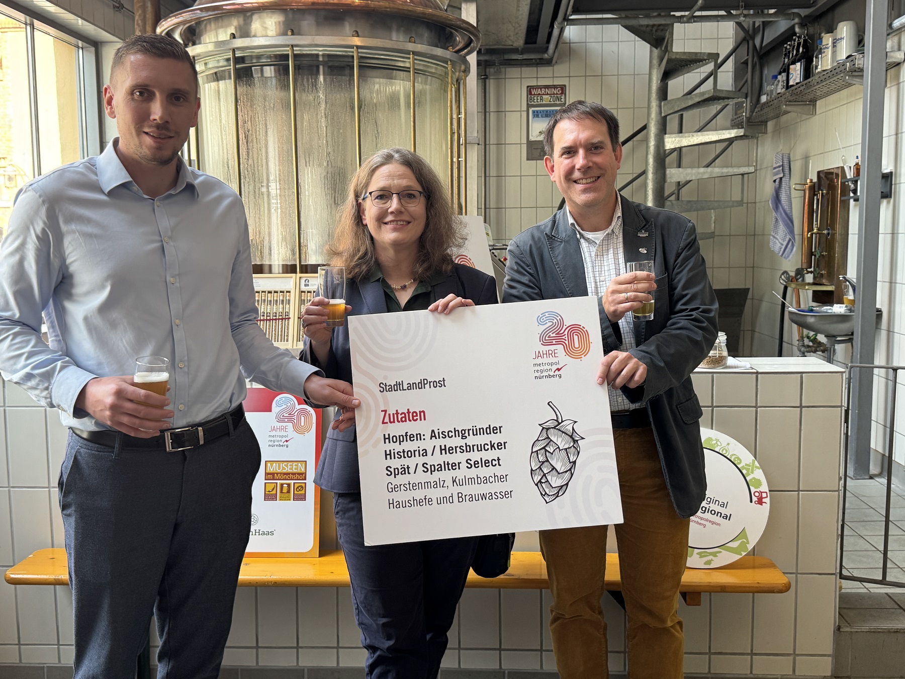 „Bier ist weit mehr als ein Genussmittel – es zeigt eindrucksvoll, wie eng unsere regionalen Agrarsysteme zusammenarbeiten und welch wirtschaftliche Kraft darin steckt. Der Prototyp war sehr vielversprechend. Jetzt freuen wir uns auf das Jubiläumsbier der Metropolregion, das die Vielfalt und Kreativität des Brauhandwerks in unserer Region repräsentiert“, sagt Klaus Peter Söllner, Sprecher von Original Regional und Landrat von Kulmbach bei der Verkostung des Prototyps in Kulmbach. Dort, in der Museumsbrauerei der Museen im Kulmbacher Mönchshof, reift nun das Bier, bis es im September in Bayreuth abgefüllt wird. Einen Namen gibt es nun auch: StadtLandProst setzte sich bei einer Abstimmung auf Instagram durch.