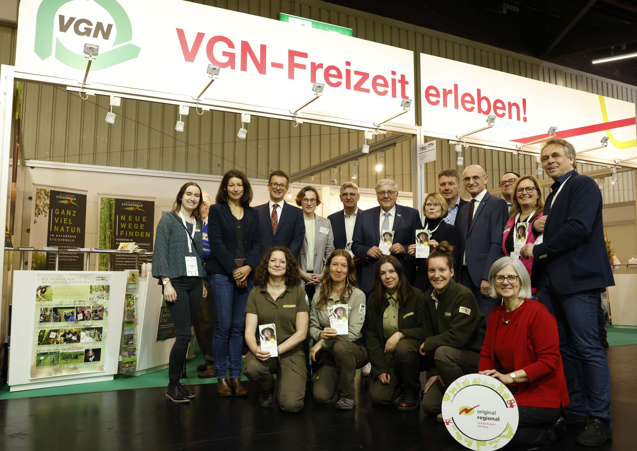 Zahlreiche Teilnahme kommunaler Vertreter, GeschäftsführerInnen und RangerInnen sowie der Original Regional-Betriebe aus den 3 Naturparks bei dem Kick-Off auf der Freizeitmesse. Foto:Sandra-Lachner