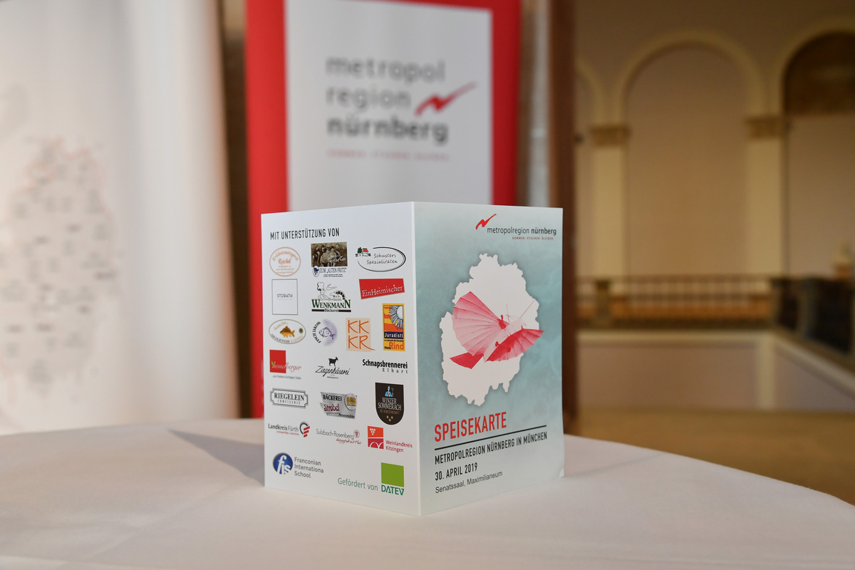 Am Abend lud die Metropolregion Nürnberg in den Senatssaal des Maximilianeums ein. Rund 250 Gäste kamen zum Get-together der Metropolregion – darunter Bayerns Ministerpräsident Dr. Markus Söder, Landtags-Vizepräsident Karl Freller und Charlotte Knobloch, Präsidentin der Israelitischen Kultusgemeinde München und Oberbayern. Unter dem Motto „Innovationskunst“ präsentierte sich die Region mit ihrem technisch-wirtschaftliche Potential. Natürlich durften dabei auch die kulinarischen Aushängeschilder der Region rund um Bratwurst, Bier, Wein und Brotzeit nicht fehlen.
